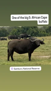 Another unforgettable sighting at Amboseli was the formidable African buffalo—specifically, the Cape buffalo, a member of the Big Five and one of Africa’s most dangerous and unpredictable animals. Despite their resemblance to domestic cattle, Cape buffalo have never been successfully domesticated, owing to their wild temperament and fierce independence.